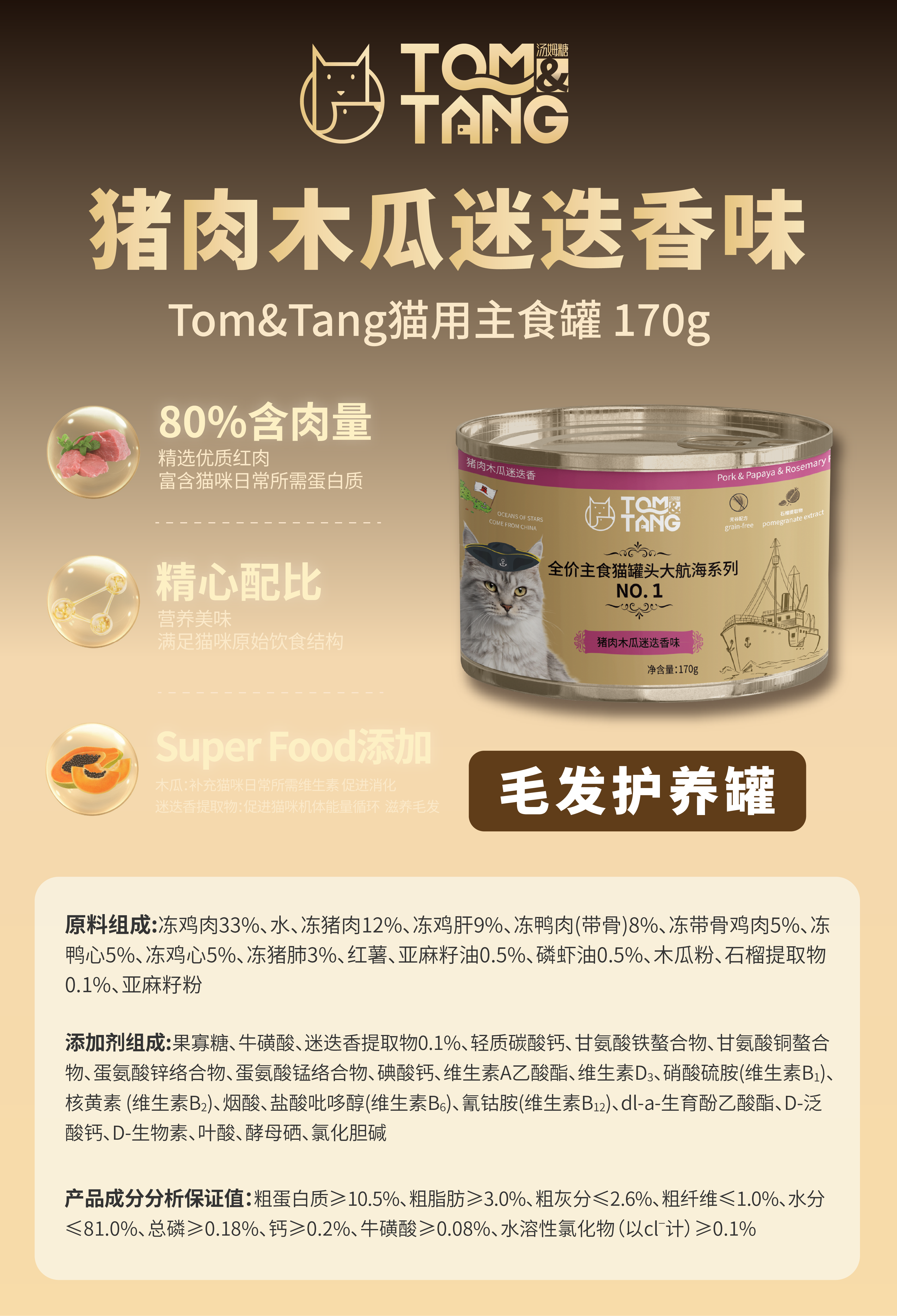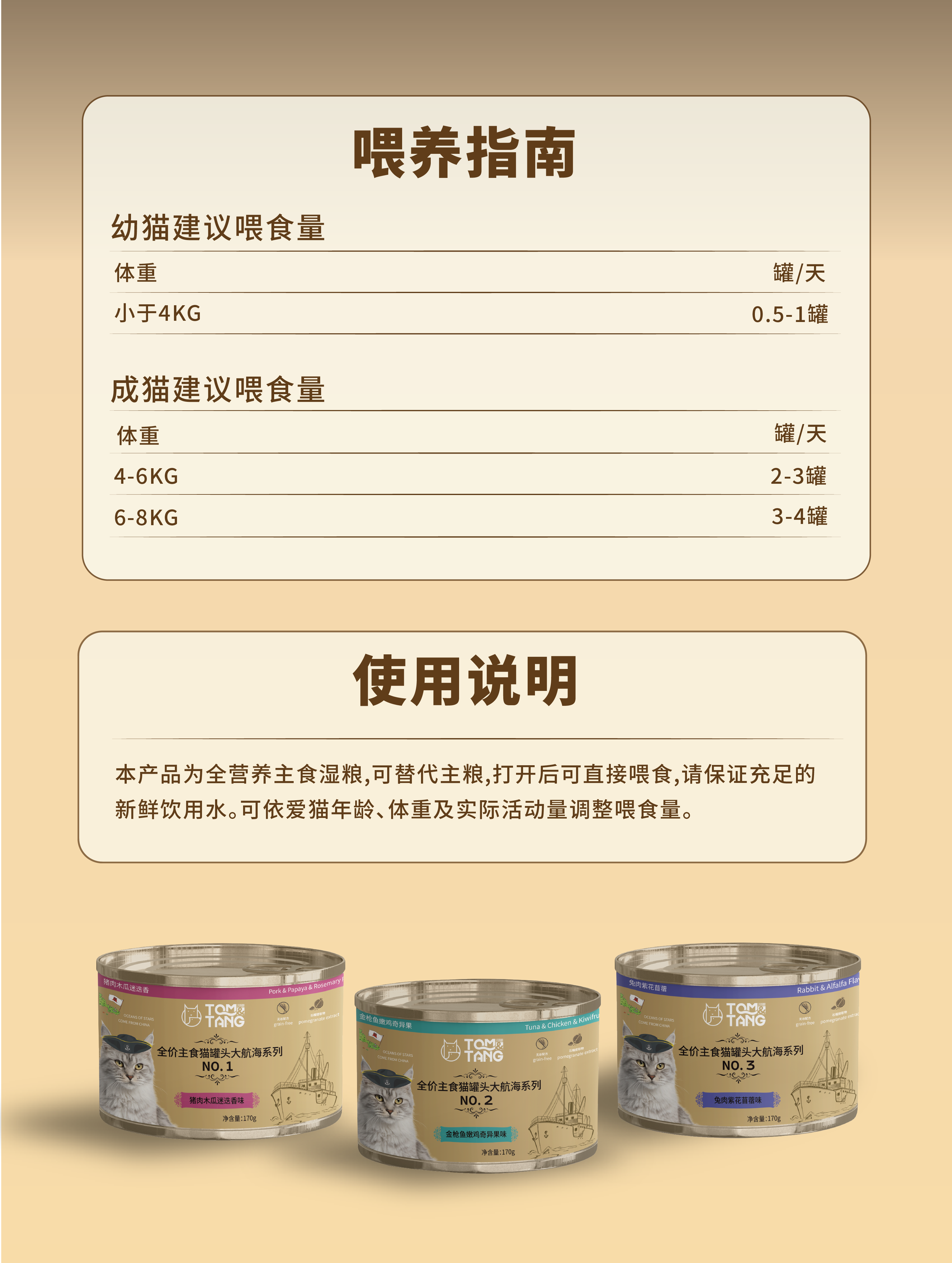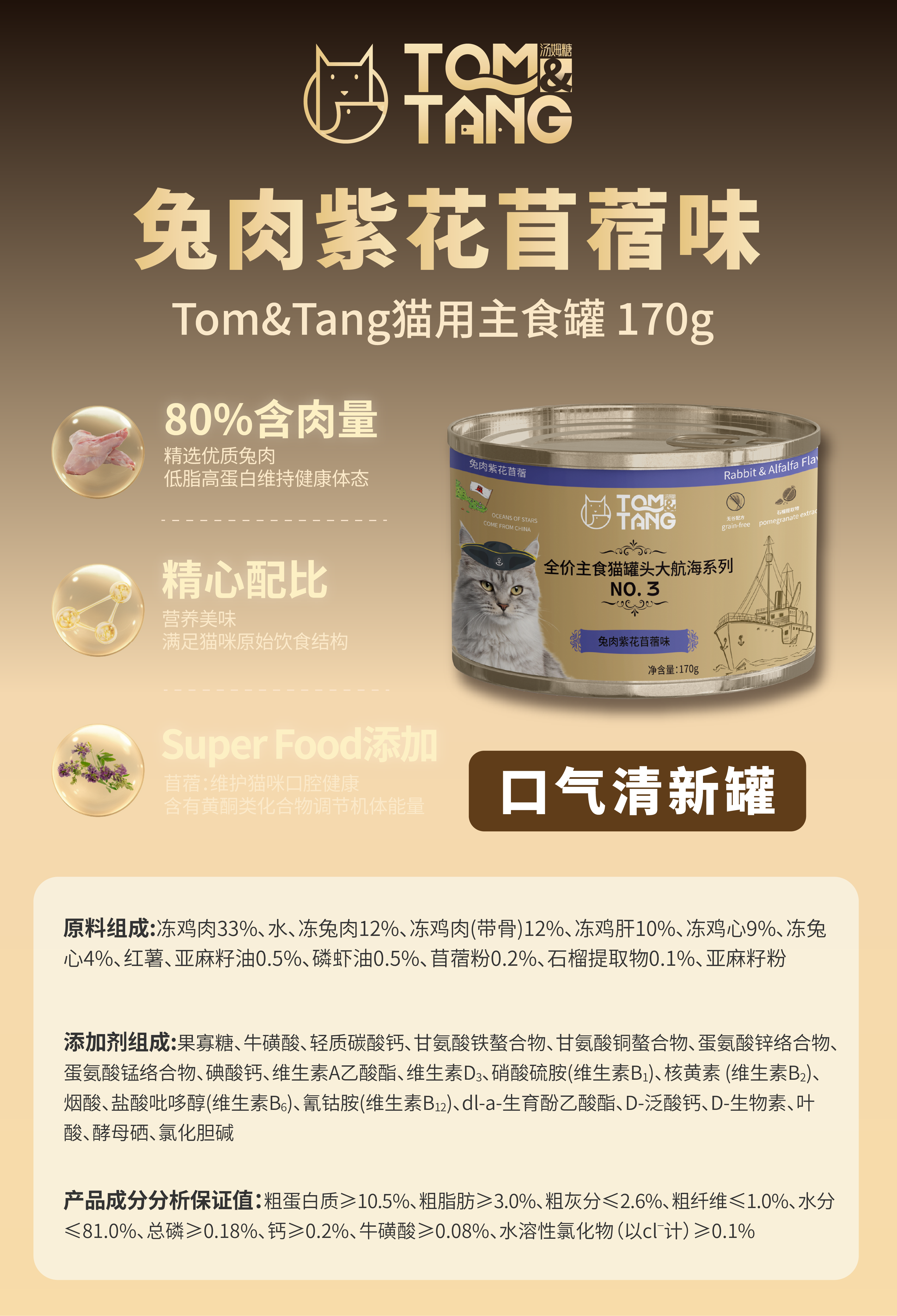 [直接买]TOM&TANG汤姆糖全价猫用主食罐170g*3罐(3口味组合装)